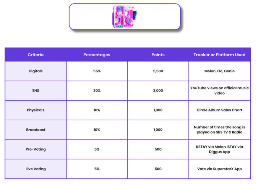 Live Broadcast: Sunday at 3:20 PM KST on SBS.IMOAs can watch INKIGAYO via SBS KPOP's YouTube channel.Tracking Period: Monday at 12 PM KST to Monday at 11:59 AM KST.LIVE-VOTING VIA HIGHER APP DURING BROADCAST.